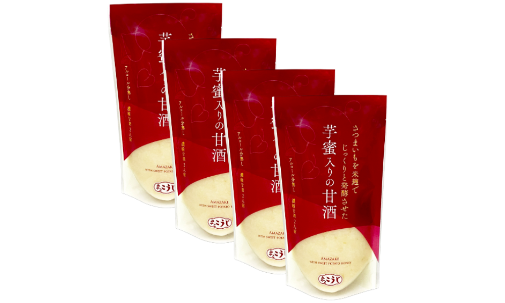 麹で発酵させた芋蜜を使った甘酒。蒸したさつまいもを国産の米麹で熟成させることで、濃厚で甘みが強い芋蜜になります。砂糖不使用なのにとろりと甘く、寒い季節は温めて、暑い時期は冷やして、おいしく召し上がっていただけます。常温保存できるのもうれしい。
