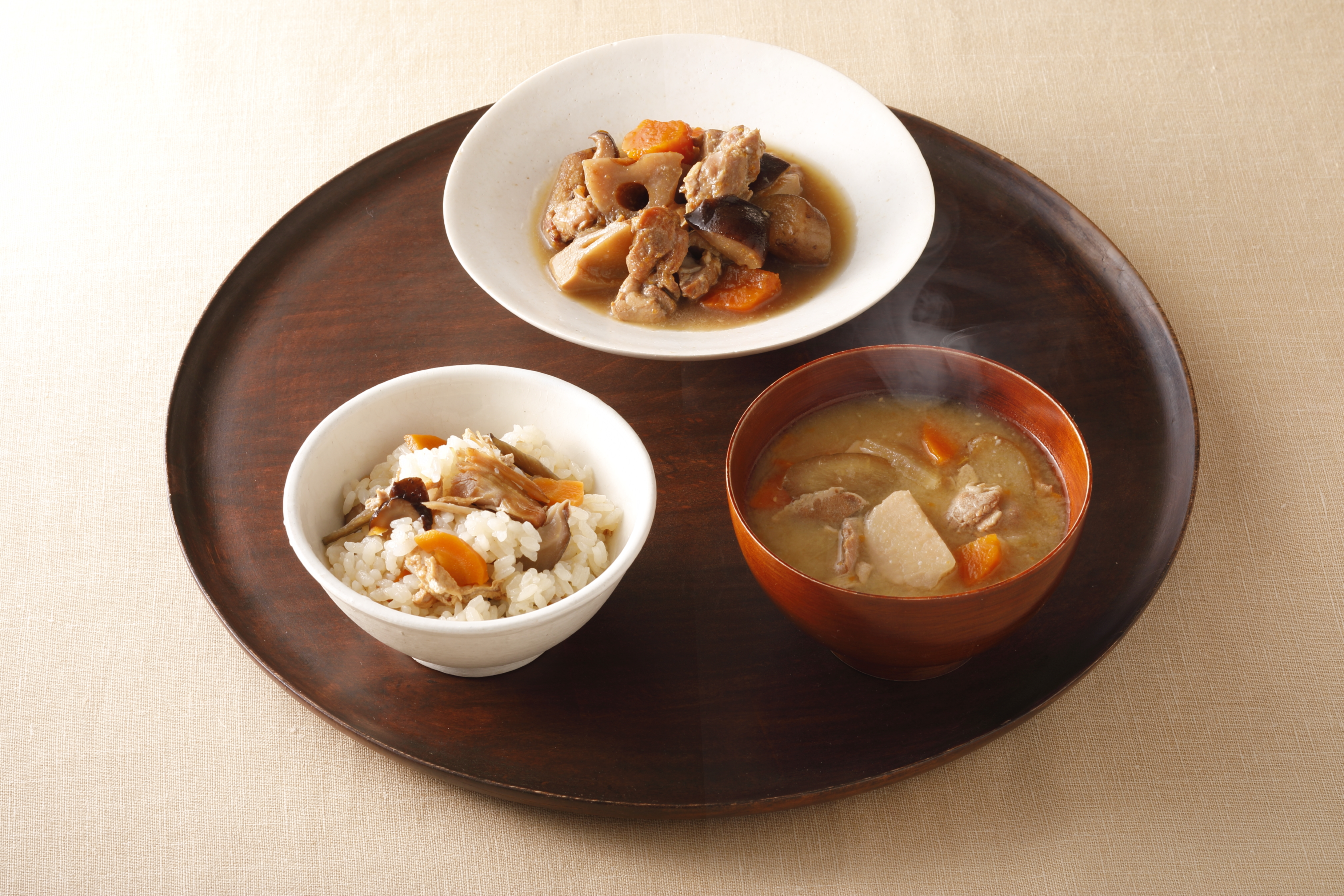 筑前煮、豚汁は耐熱容器に移して電子レンジで温めるか、袋ごと湯せんで温めるだけ。炊き込みごはんは、お米と一緒に炊くだけで手軽に食べることができます。ストックしておくと忙しい日にかんたんに食卓が整い便利です。
