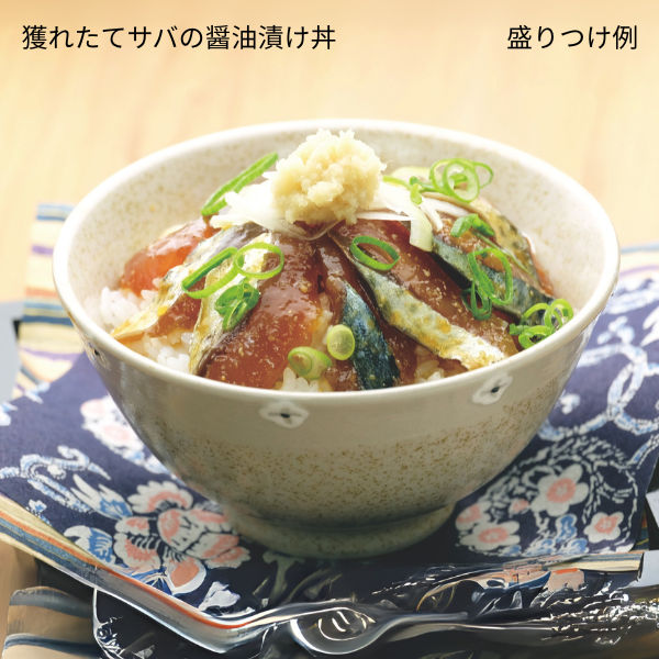 - [獲れたてサバの醤油漬け丼]サバ(高知県産)、醤油加工品(みりん、醤油(大豆・小麦を含む)、鰹節、米)、ごま、食塩