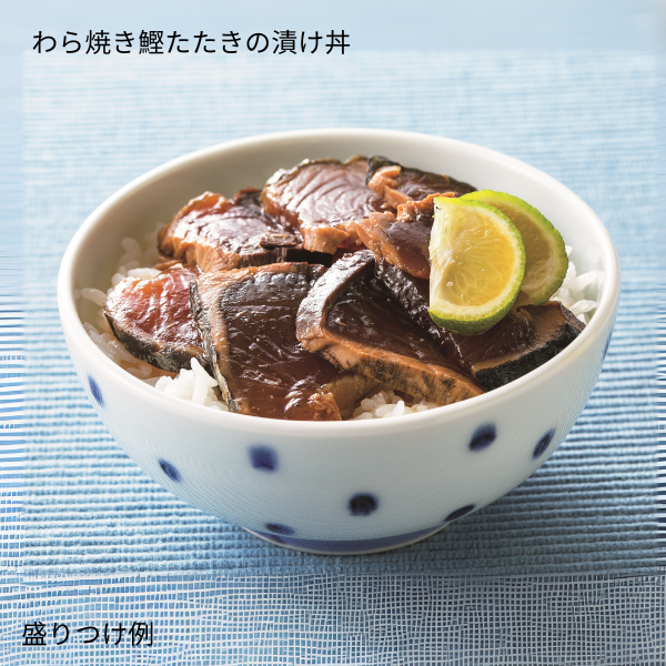 [わら焼き鰹たたきの漬け丼]鰹たたき(高知県製造)、醤油加工品(みりん、醤油(大豆・小麦を含む)、鰹節、米)、ジンジャー