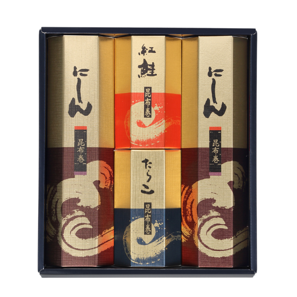 - にしん昆布巻2本、紅さけ昆布巻、たらこ昆布巻各1本 計4本