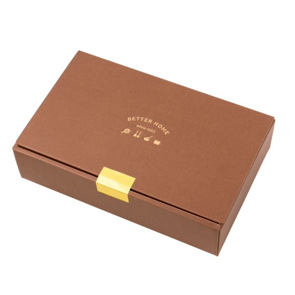 ブラウンにゴールドの箔押しをしたギフト箱に詰めてお届けします。