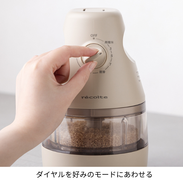 ダイヤルひとつで精米度合を調節できます。玄米の栄養素を残した3分づき米から、5分づき、7分づき、胚芽、白米、上白米まで、お好みの精米加減に仕上げられます。 さらに古くなったお米もおいしく食べられる再精米モードがあるのもうれしい!