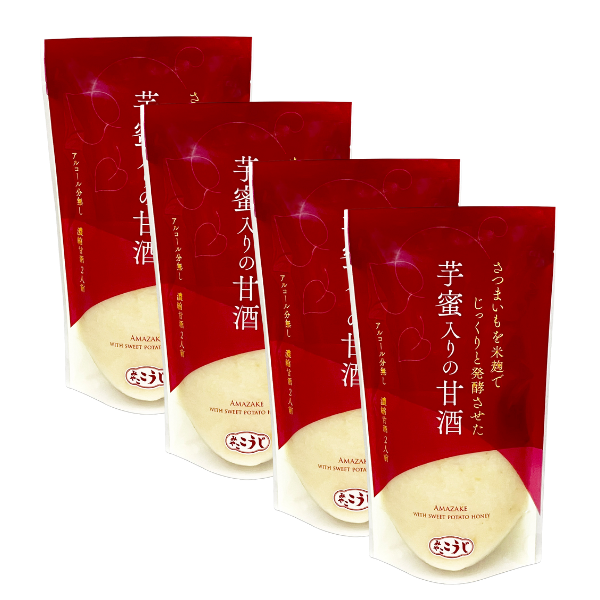 麹で発酵させた芋蜜を使った甘酒。蒸したさつまいもを国産の米麹で熟成させることで、濃厚で甘みが強い芋蜜になります。砂糖不使用なのにとろりと甘く、寒い季節は温めて、暑い時期は冷やして、おいしく召し上がっていただけます。